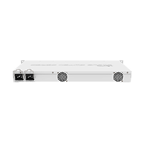 The device comes in a 1U rackmount case with two 100-240 V power supplies with failover functionality. A RJ45 console port is available for management and debugging, and a mode button can be customised to execute any RouterOS commands.